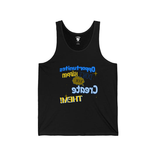Motivational Unisex Jersey Tank - "Opportunities Don't Happen, Create Them!" & "Mirrorflex: Me Versus Me"