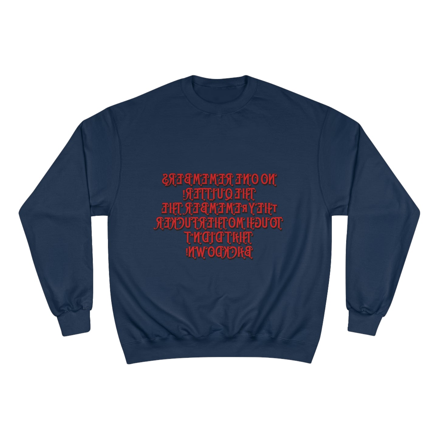 Champion Sweatshirt - 'No One Remembers the Outsider' Statement Crewneck - Stylish, Comfortable, Perfect for Friends and Family Gatherings